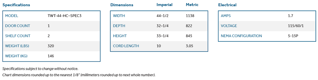 Information Table True Refrigeration TWT-44-HC~SPEC3
